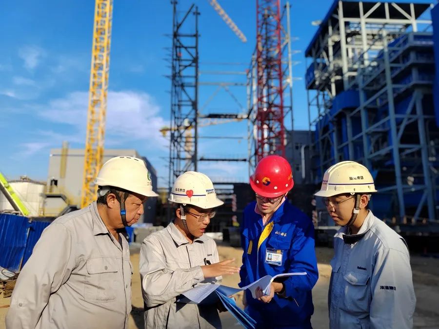 在20万吨/年乙烯基新材料项目配套供汽工程现场,海湾设计院乙烯基新材料等项目配套供汽工程项目负责人韩光磊正在组织海湾化学热电厂、监理单位、相关施工单位讨论优化锅炉的吊装方案。鉴于现场已经布置了两台塔吊,为了保证水冷壁这些大件设备一次吊装就位成功,韩光磊组织大家到现场实地核对400T履带吊车、辅吊的行进路线和站位。“准备工作越充分,细节考虑越精细,一次吊装成功的概率就会更高!”韩光磊说。