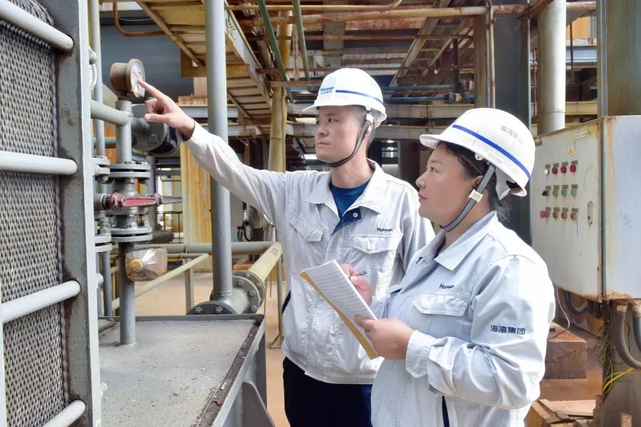 海湾化学员工节日期间立足岗位,认真巡检做好设备维护。丁辉华 摄