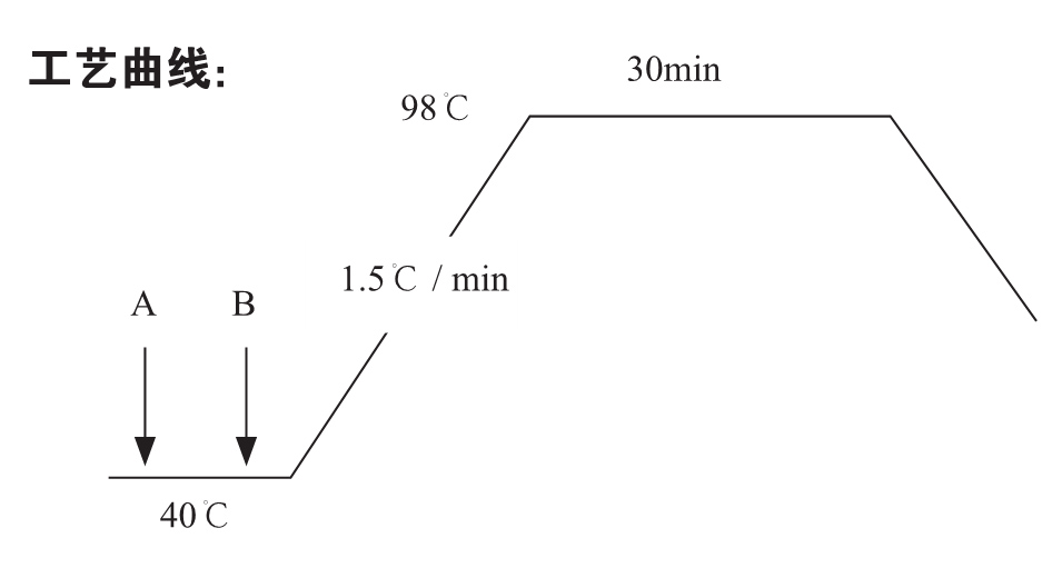 染色处方:  A:渗透剂 CA    1g/l、匀染剂 PLA    1g/l、醋酸钠    0.5-1g/l、醋酸    x g/l、调节 pH=4.5-6