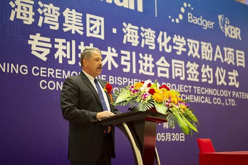 海湾集团董事长、总经理李明介绍说,经过多轮科学严谨的比选论证,海湾集团最终确定与贝吉尔技术许可公司和KBR公司(凯洛格布朗路特公司)进行合作,因为两家公司均为全球领先的技术供应商,在异丙苯、苯酚丙酮和双酚A领域独具优势,其中,工艺技术先进、产品质量稳定、能耗物耗低、安全环保可靠等特性,完全符合集团“技术国际化、装备大型化、环境生态化、管理现代化”的“四化”发展理念,是集团对标高端化工、打造世界一流的最优选择。此次签约仪式,是海湾集团继苯乙烯、聚苯乙烯项目后,与德希尼布福默诗公司的再次携手;同时也拉开了海湾集团与KBR公司(凯洛格布朗路特公司)首次合作的序幕。希望各方以此为契机,不断加强交流、密切协作,争取早日结出累累硕果。