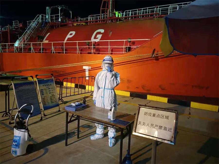 “虽然对船舶疫情防控早已习以为常,但‘幸运化学轮’的靠泊,是一场‘真刀实枪’的实战,压力远比想象中大。”回想起作业的全过程,海湾港务负责生产计划的高国皓仍然感到心有余悸。
