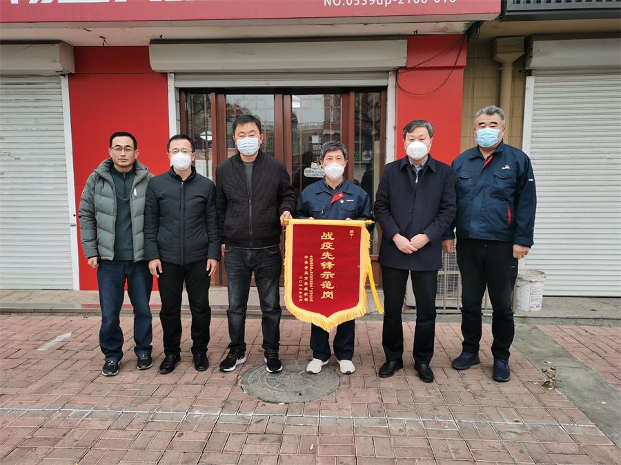 3月17日上午,莱西市委组织部长周才一行专程看望海湾新材料驻莱西工作组张学利3人,向张学利等3名党员在抗击疫情中的辛苦付出表示由衷的感谢,并颁发“战疫先锋示范岗”锦旗。